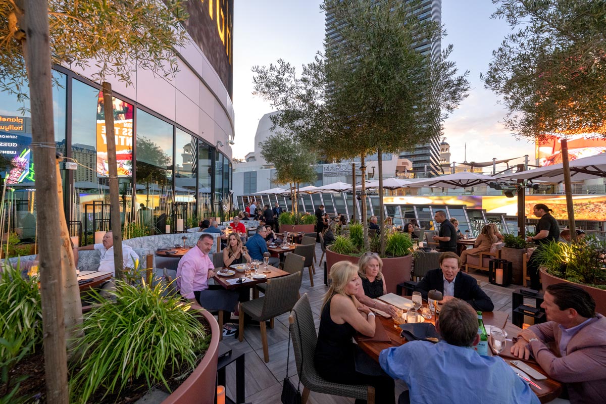 - Ambiance: Elegant, contemporary setting with rooftop terrace, impressive interiors, vibrant energy, and views of the Strip